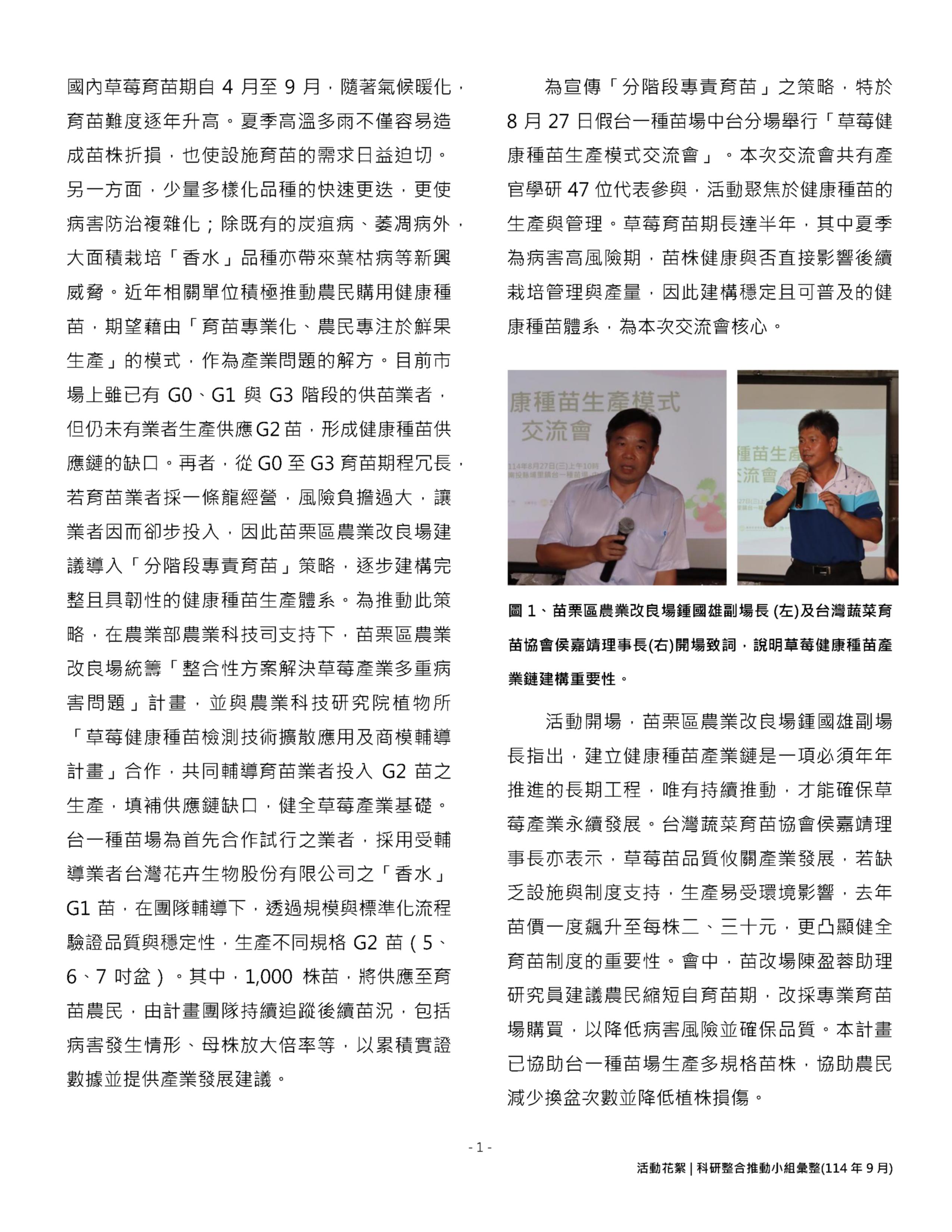 分階段專責育苗策略推動 草莓健康種苗 G2 成果亮相